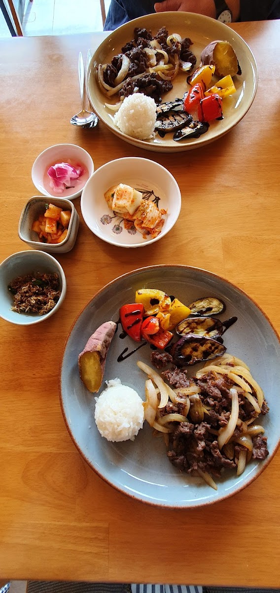 The café is renowned for its delicious 한우불고기 (Hanwoo Bulgogi), which boasts tender marinated beef that's grilled to perfection, showcasing the rich, robust flavors that only premium Hanwoo beef can deliver. Each bite is an experience in itself, perfectly complemented by a variety of side dishes that round out the meal beautifully.